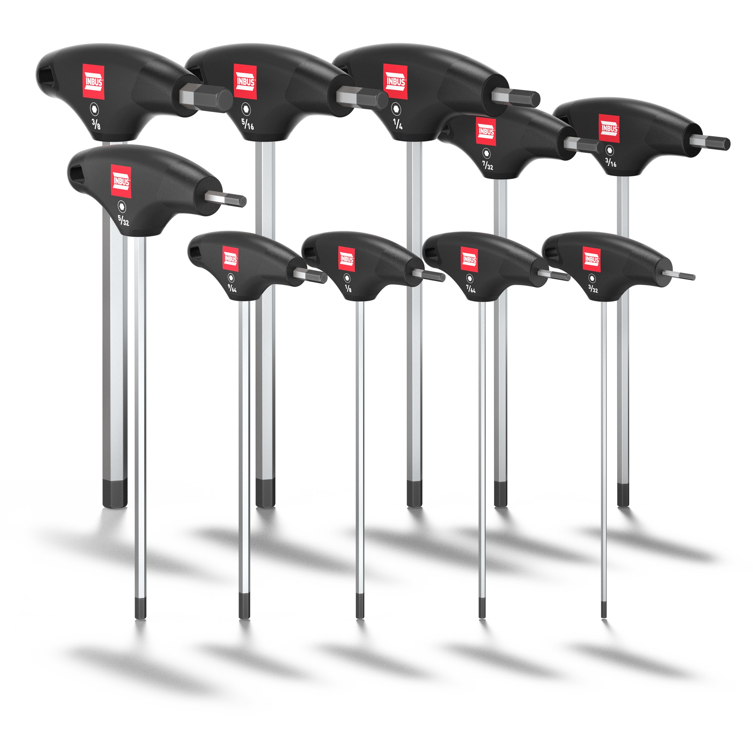 INBUS® 73809 T-Griff Schraubendreher Set (Zoll) 10tlg, 3/32–3/8", mit HybridTouch