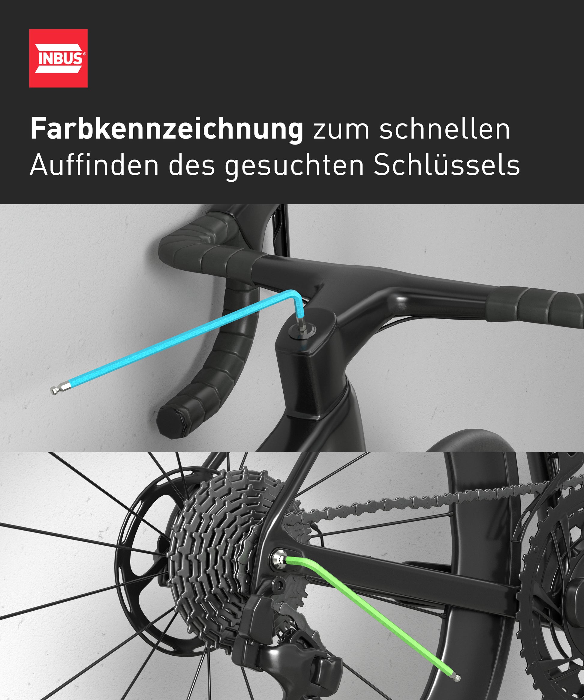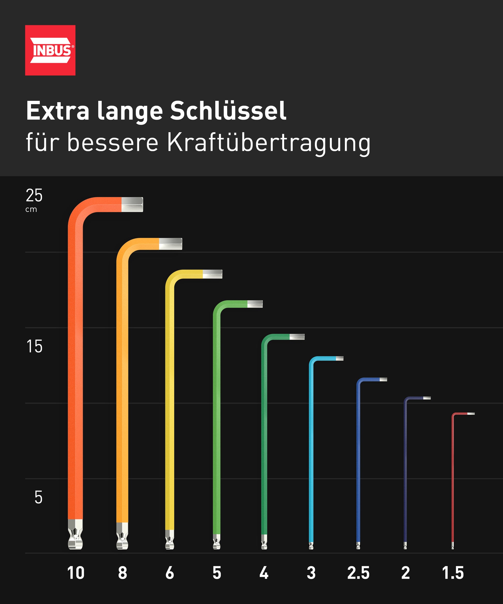 Inhalt: 9 × INBUS L-Serie Winkelschraubendreher: 1.5mm | 2mm | 2.5mm | 3mm | 4mm | 5mm | 6mm | 8mm | 10mm
